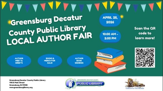 The Greensburg Decatur County Public Library’s Writers In The Stacks is hosting an open-house style local author fair on April 25th, 2026 from 10 am to 2 pm!